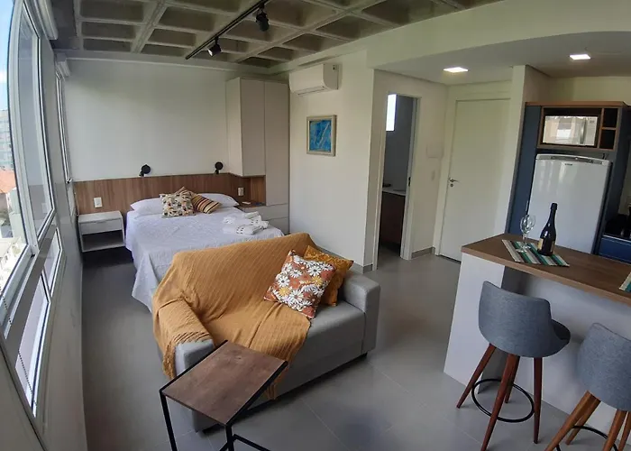 O Studio contemporâneo em prédio novíssimo oferece cozinha equipada. Os hóspedes também podem pegar um autocarro na estação de autocarros Israelita, situada a 100 metros de distância para explorar o resto de Porto Alegre.